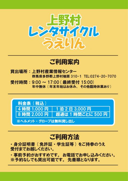 2021/04/22上野村レンタサイクルサービス開始について